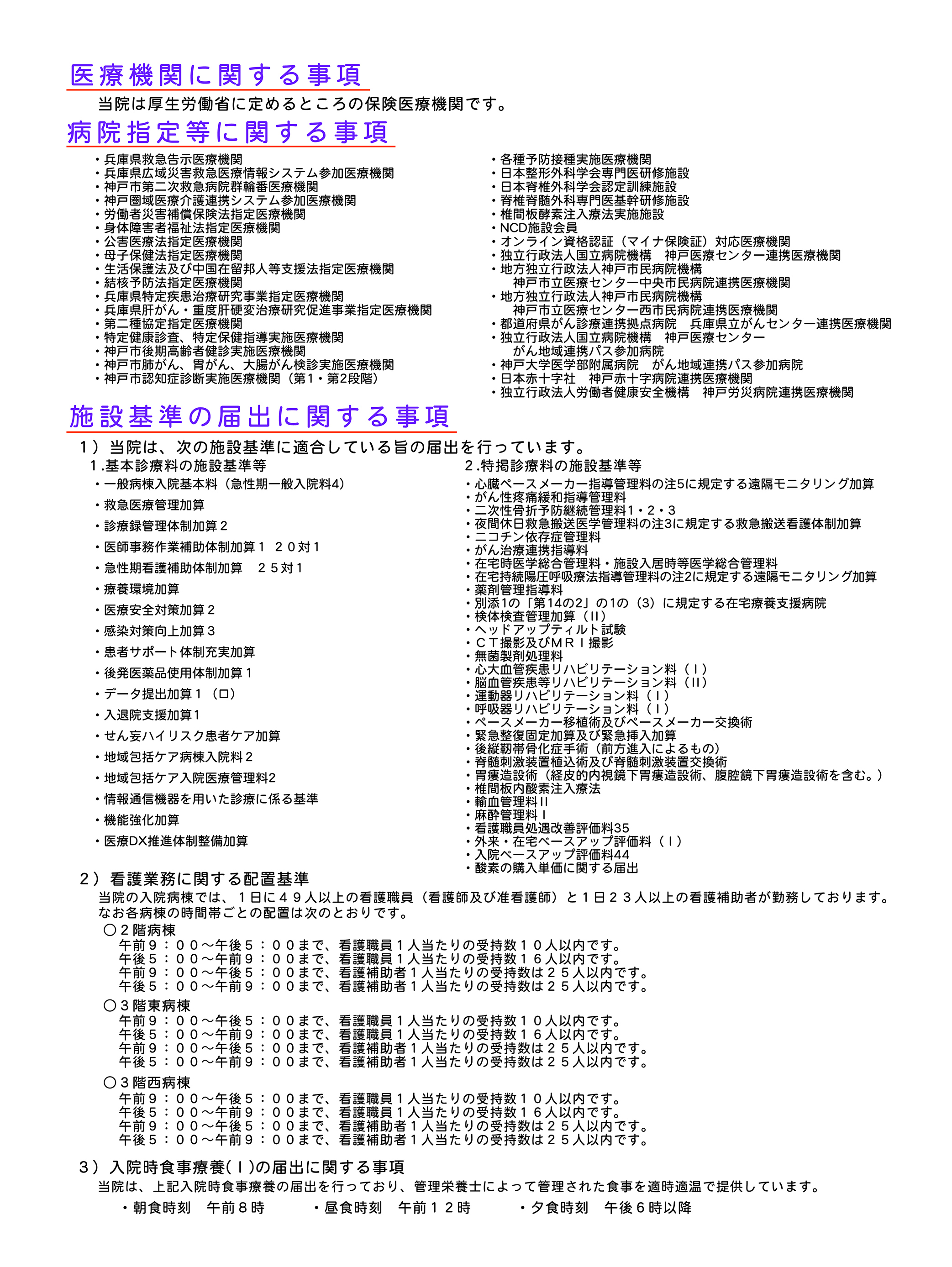 周辺のご高齢の患者さんが増え、日常診療から救急搬送まで対応できる体制になり、かかりつけ病院として、今後もこの須磨に愛され、社会に貢献できる病院を目指し、「ふれあい・やさしさ・あんしん」を職員一同が協力して務め、質の高い医療を提供し続けたいと思います。