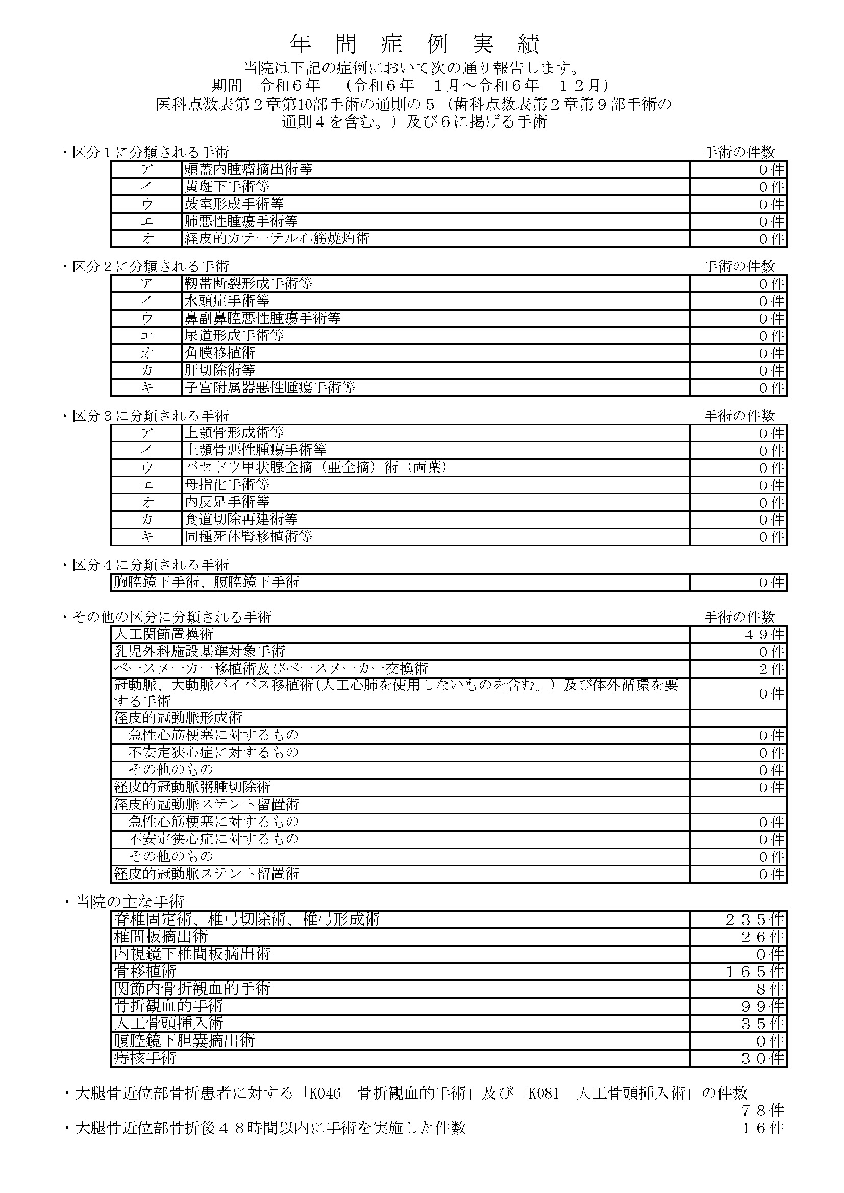 届出実績報告(医療点数表第2章第10部手術の通則の5及び6に掲げる手術の報告)