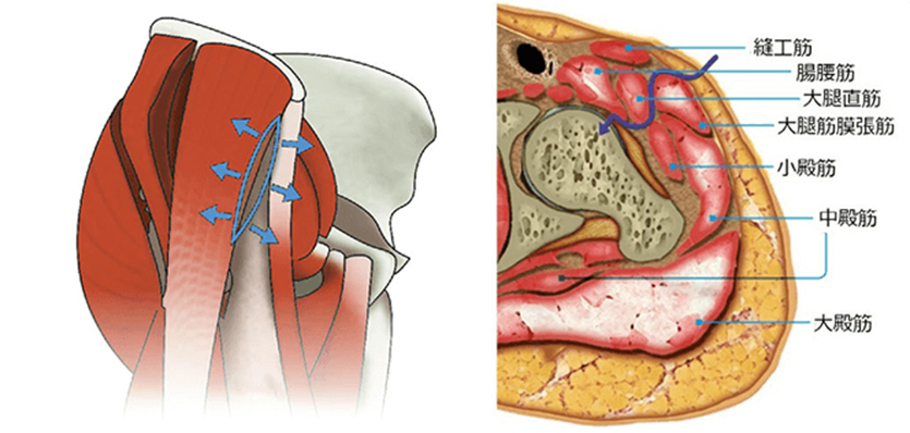 股関節にはさまざまな進入法(どこからどのようにして股関節まで到達するか)があり、同じ人工股関節置換術でも病院によって進入法が異なります。国内でもっとも多く使用されているのは後方進入法です。後方進入法は展開が良いことが利点ですが、股関節の後方の筋肉と関節包(関節の袋)を切離しなければならず、脱臼率が高いという欠点があります。
