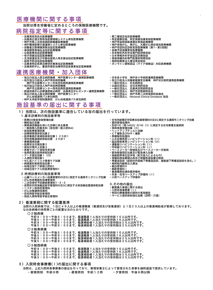 周辺のご高齢の患者さんが増え、日常診療から救急搬送まで対応できる体制になり、かかりつけ病院として、今後もこの須磨に愛され、社会に貢献できる病院を目指し、「ふれあい・やさしさ・あんしん」を職員一同が協力して務め、質の高い医療を提供し続けたいと思います。