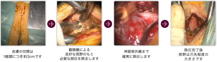 また、1椎間につき約3cmの小切開で手術を行うことができ、術後の創痛も軽微です。