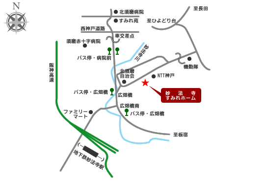 ● 神戸市営地下鉄「妙法寺駅」より徒歩15分