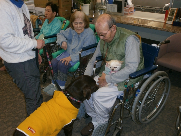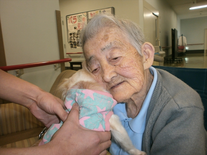 ワンちゃんの頭やお腹を撫でたり、抱っこしたり楽しいひとときを過ごされました。