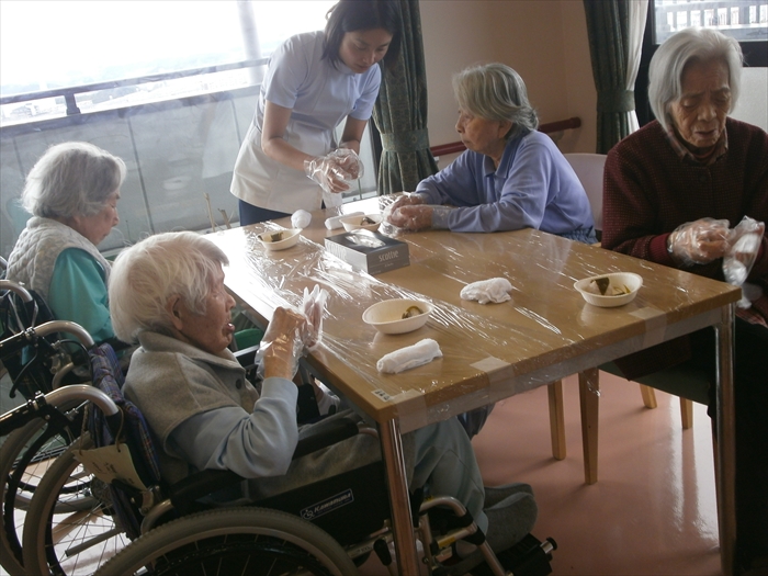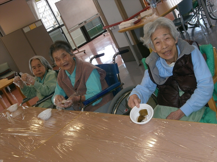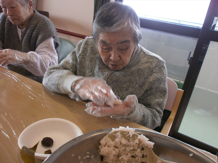 ご利用者様と一緒にあんこや、もち米を丸めて、美味しい桜もちができました。