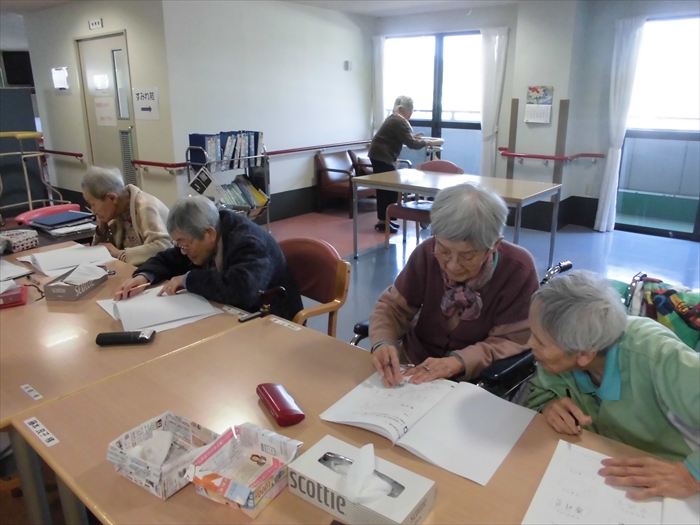 計算問題や間違いさがしなど頭の体操となるプリントに取り組んで頂いています。
