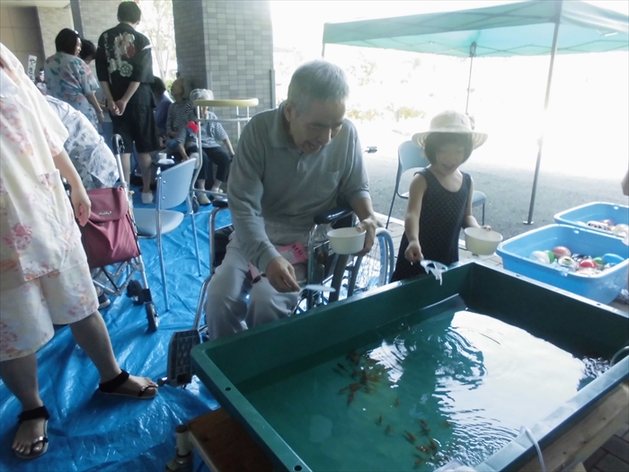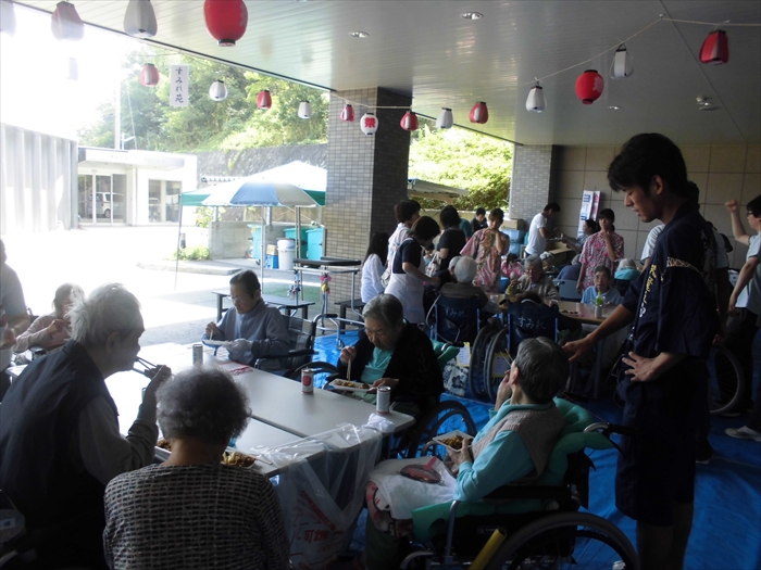 焼きそば、たこ焼き、アメリカンドッグにかき氷、金魚すくいにヨーヨー釣りと色々な模擬店で楽しんで頂き、また催し物では太鼓演奏、キッズダンスなどを鑑賞されました。 「楽しかった~」「また来年も楽しみやねぇ」「美味しいな~!」と、笑顔いっぱいのとても楽しい夏祭りになりました。
