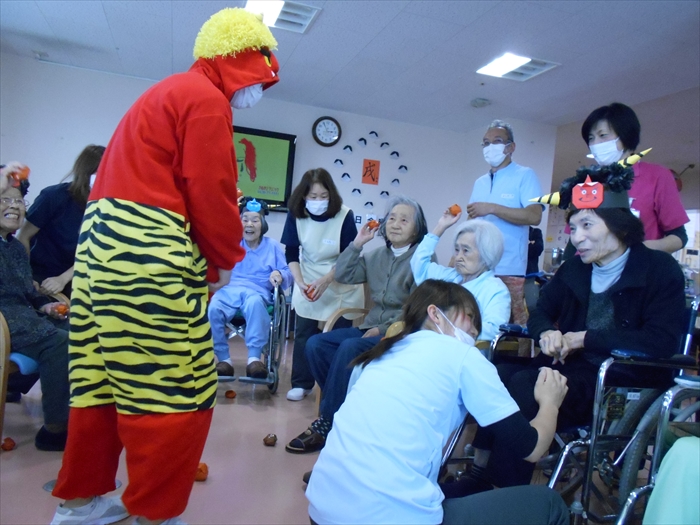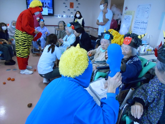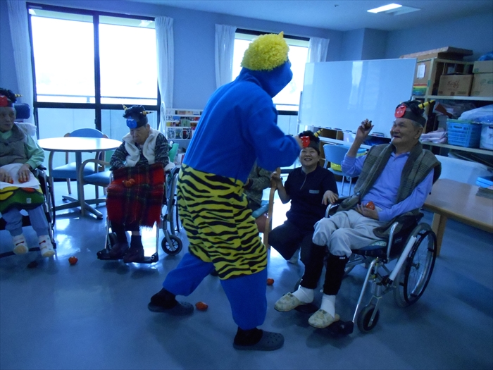 「鬼は~そと~」「福は~うち~」と鬼に向かって、豆に見立てたボールを投げて、鬼退治をしました。 今年も皆さんに福がきますように。