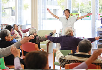 介護老人保健施設の目的は、急性期の心身の病気や障害によって、急性期病院と回復期病院で治療を受けた後、介護老人保健施設での一定の入所期間内で、自宅での自立した生活ができる状態へ回復することにあります。施設では、心身の機能回復訓練(リハビリテーション)や日常生活の介助、健康管理、介護に関わる相談などのサービスを提供しています。介護認定の更新時に、入所者が「要支援」もしくは「自立」と認定された場合は退所扱いとなります。